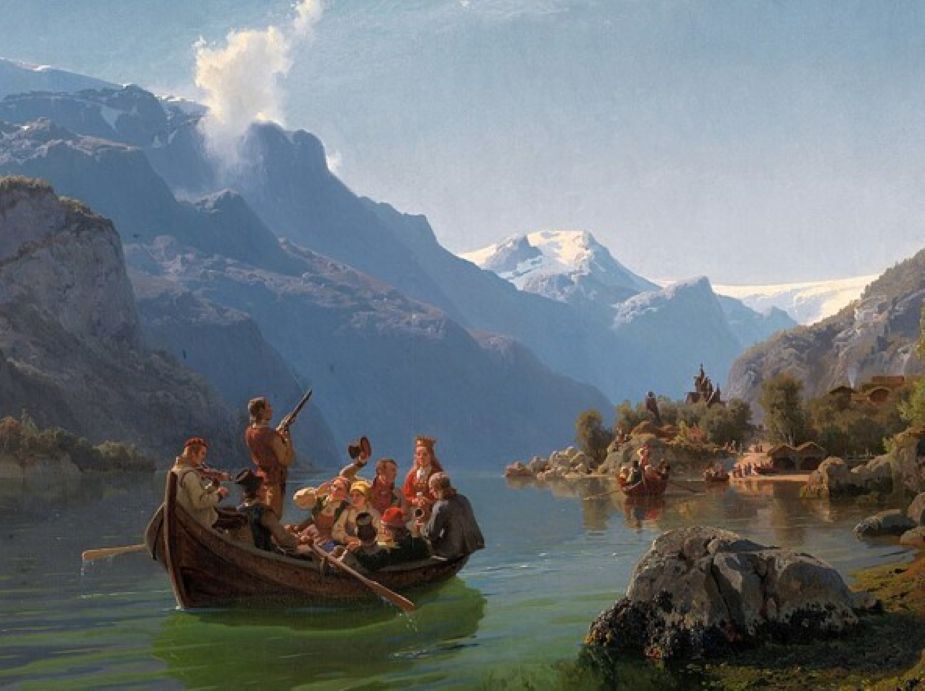UPDATE10DEC2025: the 6 and 12 place setting boxes and single dinner forks are out of stock. We will restock again in May, 2026. The former packaging (Tidemands 'Bridal Procession on the Hardanger Fjord') is no longer used by Hardanger Bestikk, but rather a sleek and contemporary black box is used instead. Some of the older stock will still be available in the 'Tidemand' box until sold out, however, any new imports will have the new black box. Please also see the available blank greeting card (5" x 7" with envelope) with image of 'Bridal Procession on the Hardanger Fjord'.