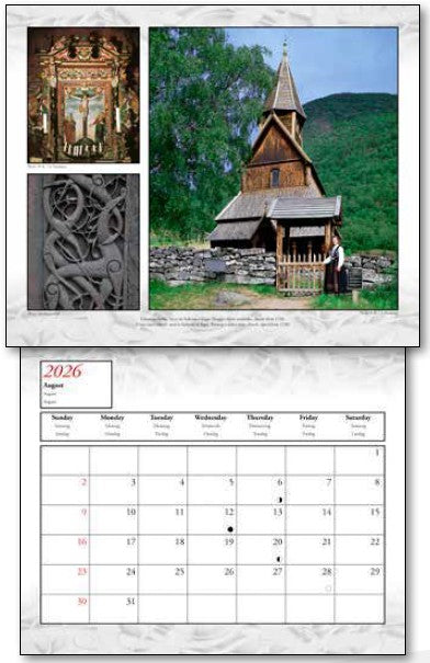 Beautiful images of the stave churches in Norway. Size is 9.5"H x 11.5"W, 19"W x 11.5"W when open. Spiral bound.
