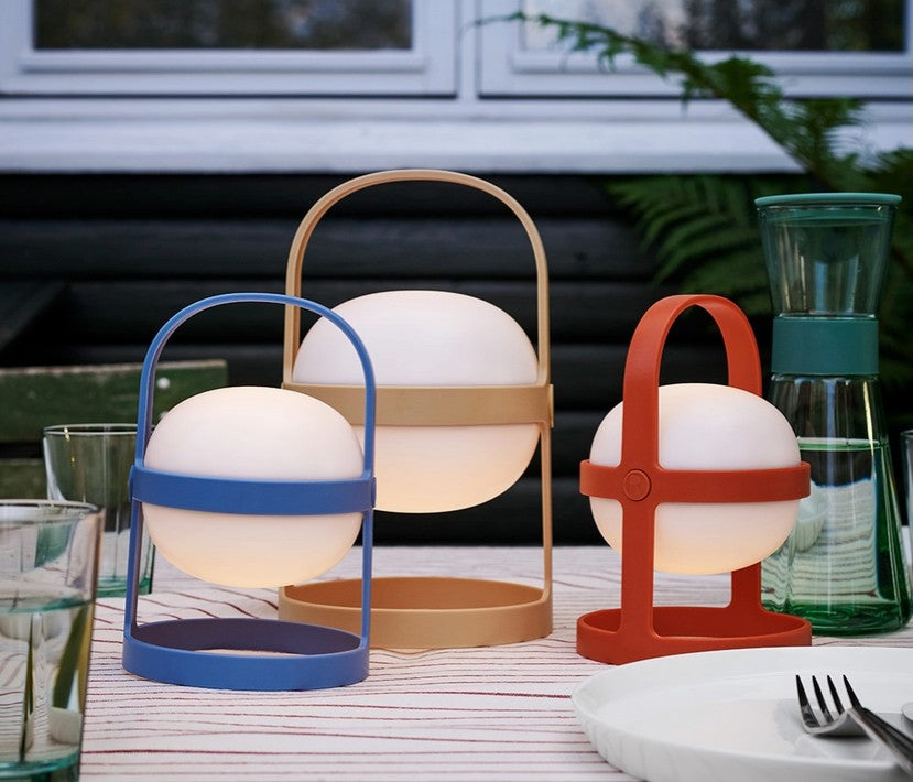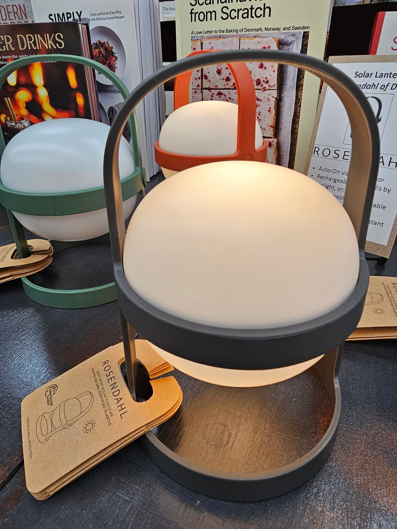 Perfect for spring and summer outdoor dining, the 'Soft Spot' solar lantern by Rosendahl of Denmark! Auto-On when left outdoors, as it is charged by sunlight. Also chargeable by USB-C cable (not included) if you wish to use indoors or on cloudy days. Several colors, suitable outdoors to -4° F, wind and weather-resistant, and made of recycled plastic. 7" tall x 4.5"wide, perfect for tabletop or use as a hand-held lantern.